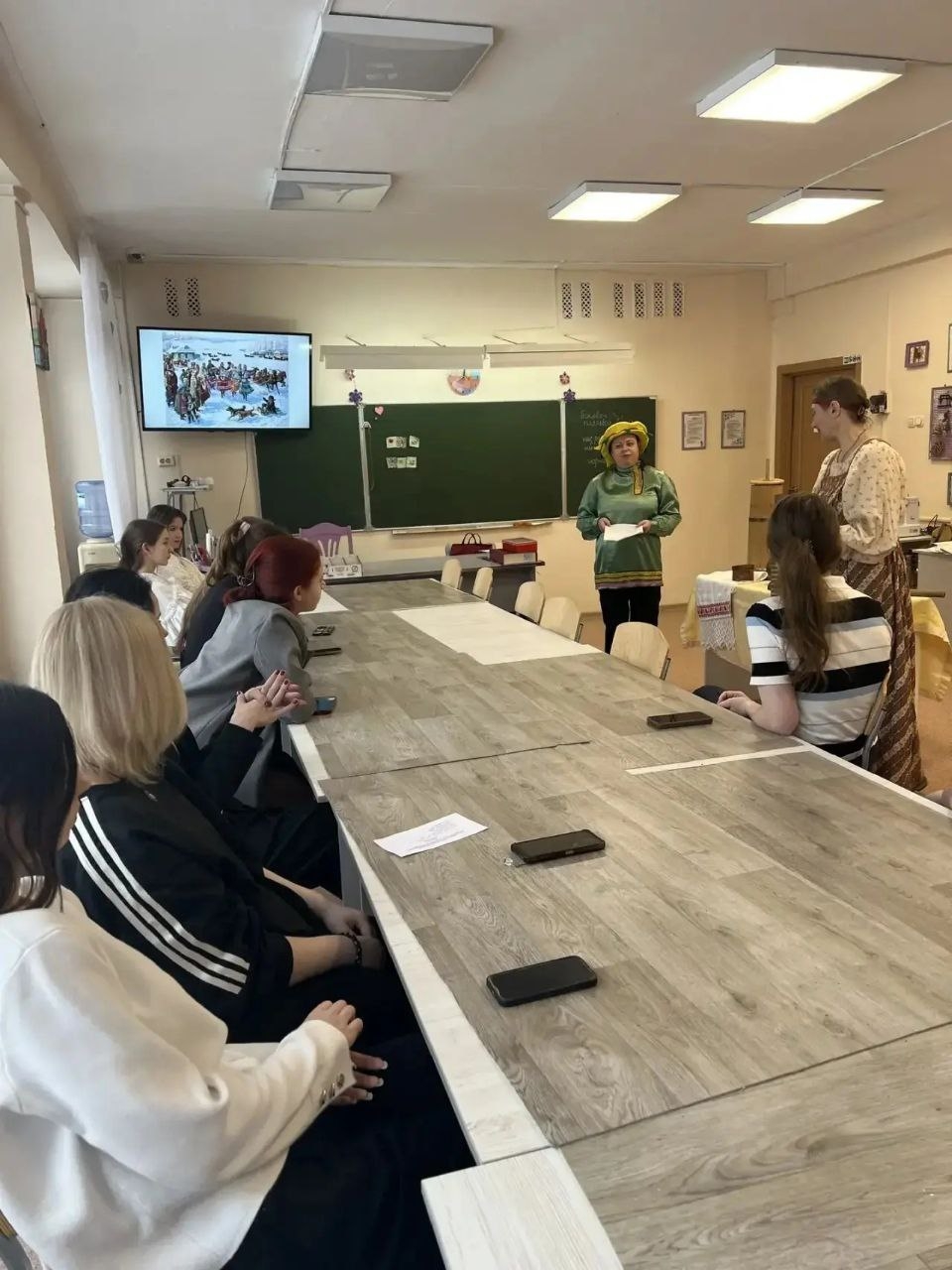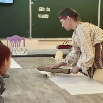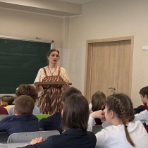 В 2026 году вторник масленичной недели, который в старину назывался весёлым словом «Заигрыш», запомнился поездкой в гости к девятиклассникам гимназии № 72. Ребята с большим вниманием узнавали об истории праздника, соединившего языческие и православные традиции, вспоминали пословицы и поговорки о Масленице, народные приметы, названия и обычаи каждого дня Сырной недели. Особенный интерес вызвали представленные на передвижной выставке старинные предметы быта. Их можно было подержать в руках, попробовать в действии: погладить бельё при помощи рубеля и валька, ощутить в руке вес литого чугунного и разборного утюгов, с которыми привычно управлялись хозяюшки, подхватить чугунок ухватом и переместить его с места на место, понять принцип действия поршня в маслобойке. Вторая часть занятия озорно и весело прошла во дворе гимназии. Ребята участвовали в любимых русским народом играх («Кошки-мышки», «Пирожок», «Яша», «Алёнушка и Иванушка»), где проявили ловкость, смекалку, наблюдательность и быстроту! А в гимназической столовой после игр и развлечений всех ждали румяные, с пылу с жару, кружевные блины.