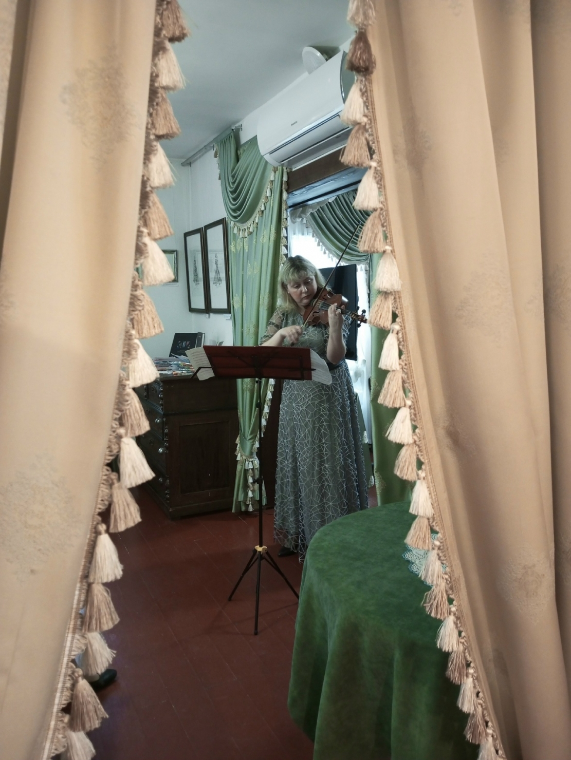 Вниманию слушателей были представлены, в основном, произведения зарубежных композиторов: Иоганна Себастьяна Баха, Готфрида Генриха Штёльцеля, Вольфганга Амадея Моцарта, Йозефа Гайдна, Эдварда Грига, Витторио Монти, Исаака Альбениса. Прозвучало как сольное исполнение музыкальных творений, так и разнообразные дуэты учащихся, а также ансамбли педагогов и учеников. На полтора часа гостиная музея превратилась в возвышенный музыкальный салон! Звучали арии, прелюдии и сонатины, пьесы, написанные в танцевальных и вокальных жанрах: сарабанда, вальс, буги, романс, колыбельная. Органично встроились в канву концерта и подчеркнули его лирическую составляющую поэтические размышления-переживания о жизни, весне и любви Александра Блока, Анны Ахматовой, Федерико Гарсиа Лорки в переводе Марины Цветаевой, Игоря Северянина.